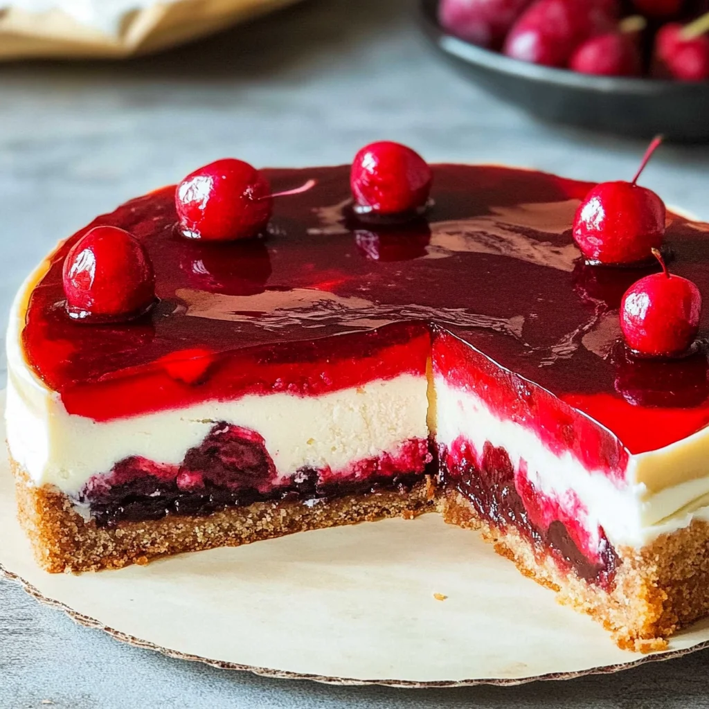 - Step 8: The Red Glaze. Finally, add the shiny red cherry glaze! Use the collected cherry juice (you need 250 ml) and prepare the red cake glaze according to the packet instructions, using your cherry juice and the 3 tbsp sugar instead of water or plain juice. Stir well and bring briefly to a boil, then remove from the heat. Let the glaze cool slightly, but not set! It should still be pourable but no longer boiling hot (otherwise, it will melt the cream). Carefully pour the slightly cooled glaze over the chilled cream layer and spread it quickly. Refrigerate the cake for at least 1 hour, preferably longer (or overnight), so the glaze and cream can fully set.