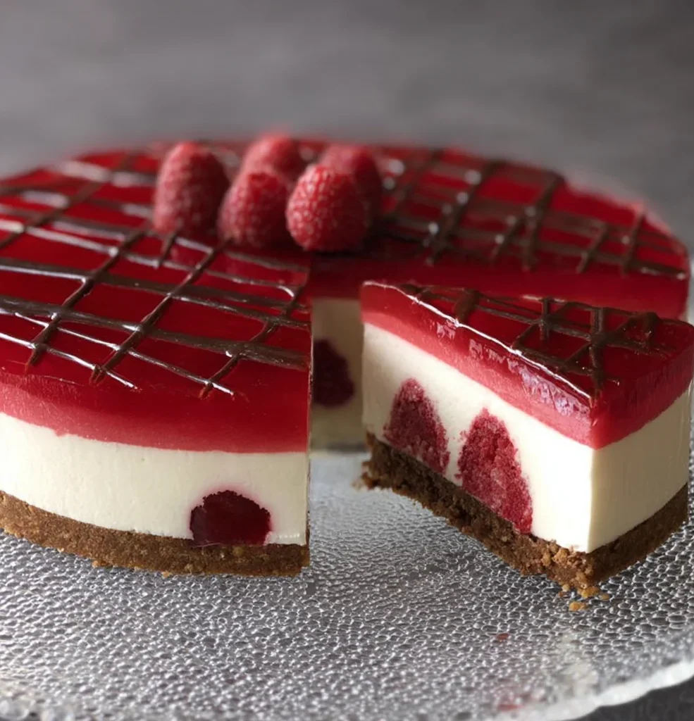Diese Himbeer-Panna-Cotta-Torte sieht aus wie vom Profi, ist aber einfacher zuzubereiten als gedacht. Sie kombiniert einen zarten Biskuitboden mit einer unglaublich cremigen Panna-Cotta-Schicht und einem leuchtend roten, fruchtig-spritzigen Himbeer-Cassis-Spiegel – ein echter Hingucker und Gaumenschmaus für besondere Anlässe oder einfach so.